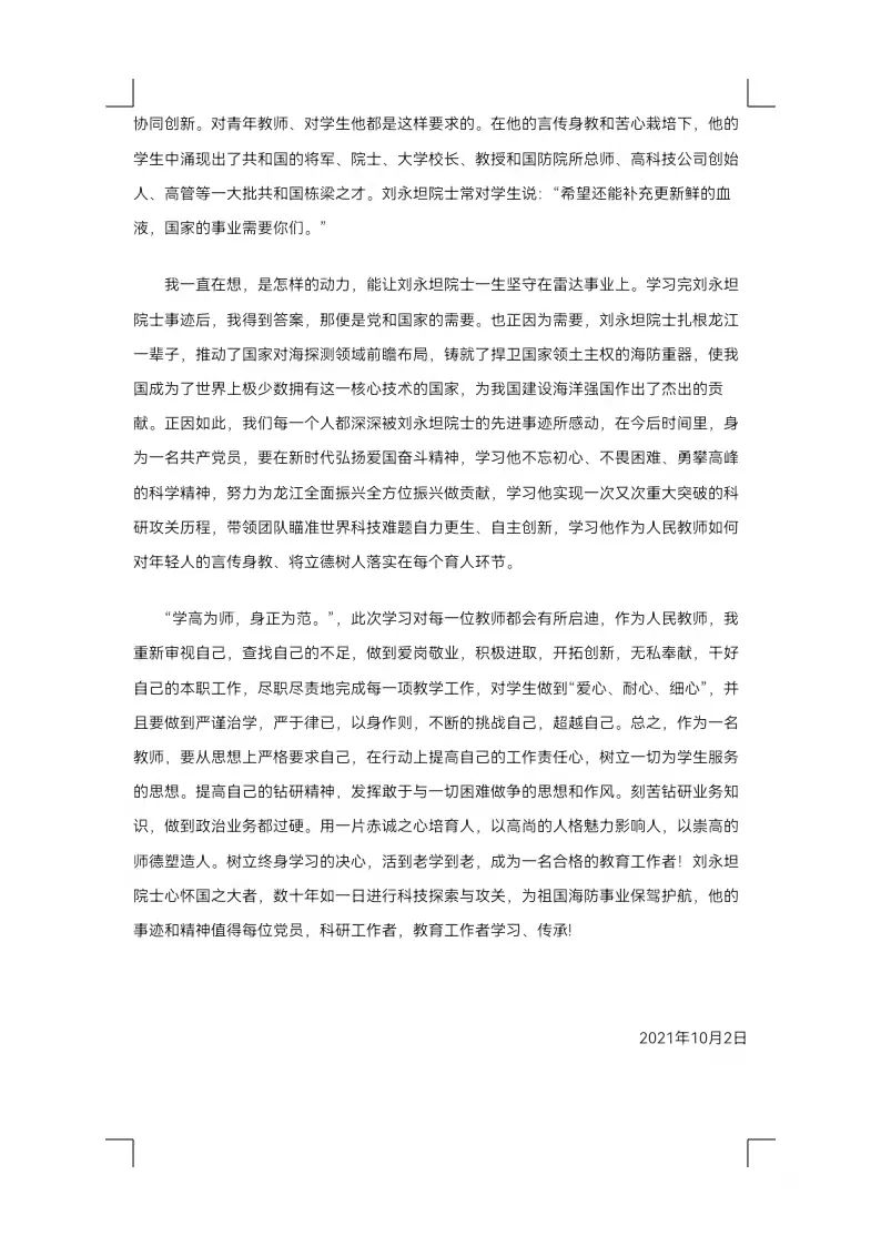刘永坦院士是我国对海探测新体制雷达理论和技术奠基人。他心怀祖国,不忘使命,数十年来研究并创新理论与技术,为我国海防工作作出卓越贡献。他传授学术经验与科研技术,为国家培养大批科技人才。在观看刘永坦院士先进事迹节目过程中,老师和同学们深切感动于前辈坚定的爱国信念和崇高的科研精神,并怀着敬仰的心观看节目全程。